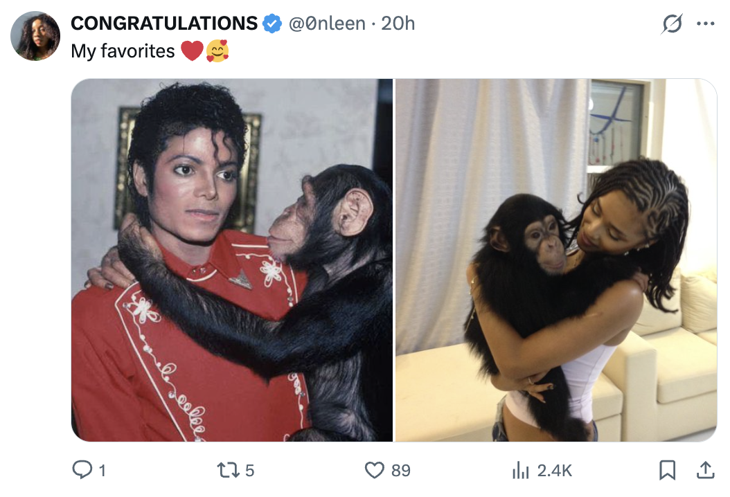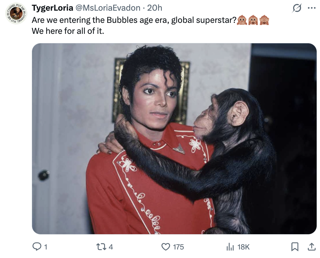 This immediately prompted fans to compare Tyla to the King of Pop, who famously owned a pet chimp named Bubbles: