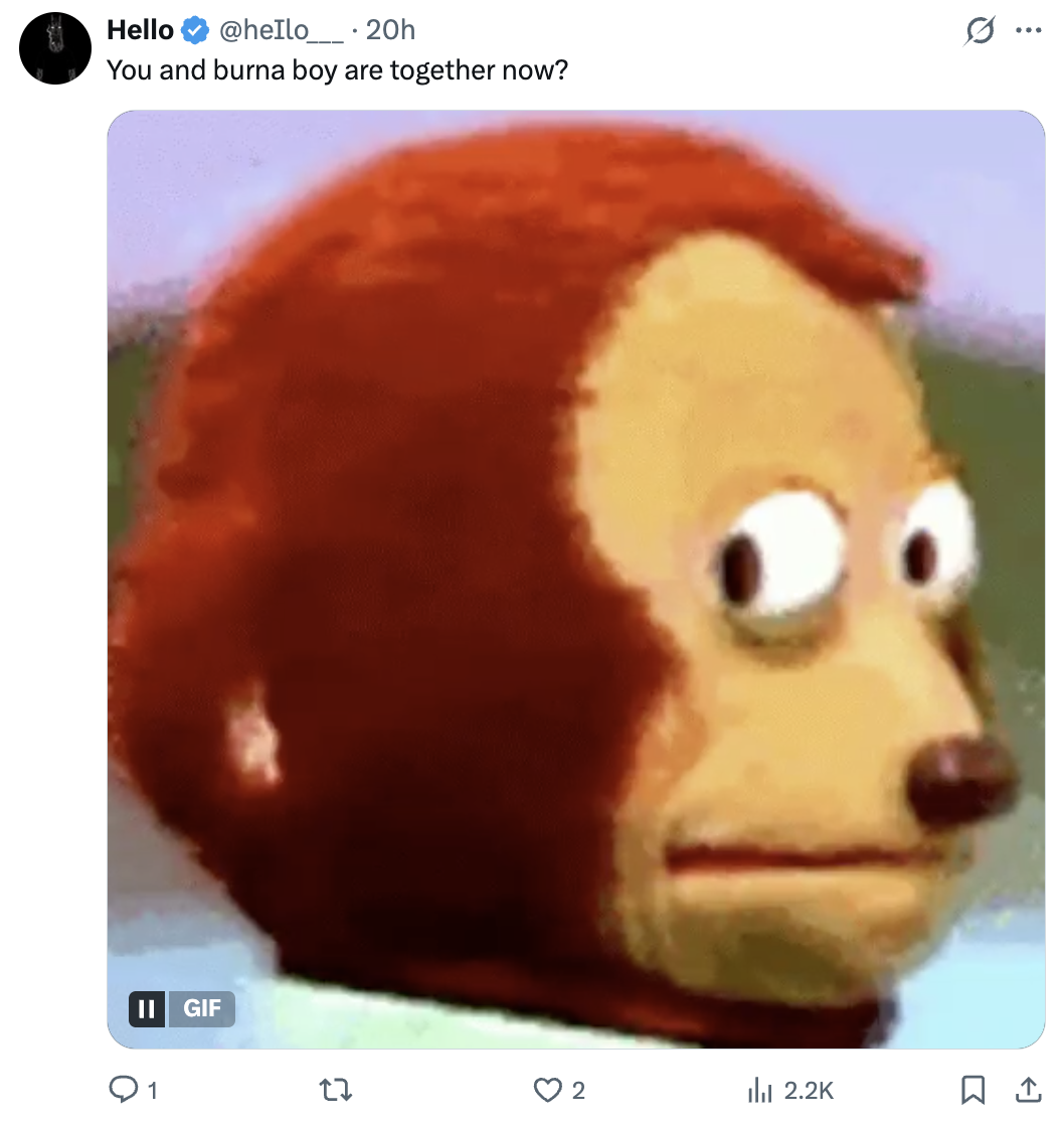 Other folks were little less flattering, comparing the chimp to Nigerian singer-songwriter, Burna Boy: