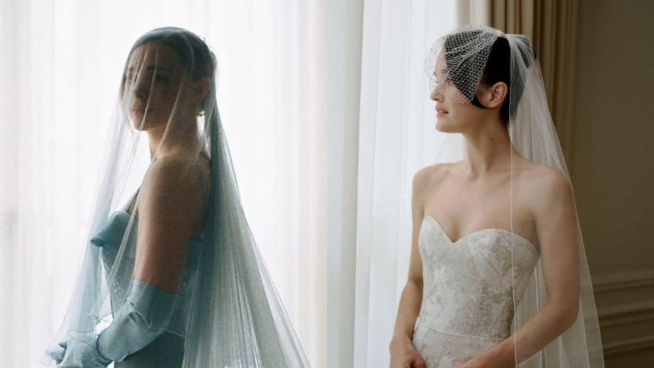Harrison chose a classic white dress with a sweetheart neckline and cathedral-length veil, before changing into a chic sheer-overlay look for the celebrations.