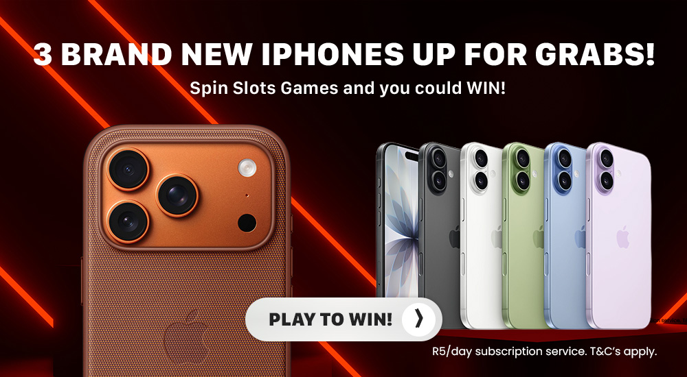 GamesSpin slots games and WIN 1 of 3 iPhones! R5/day subscription service.