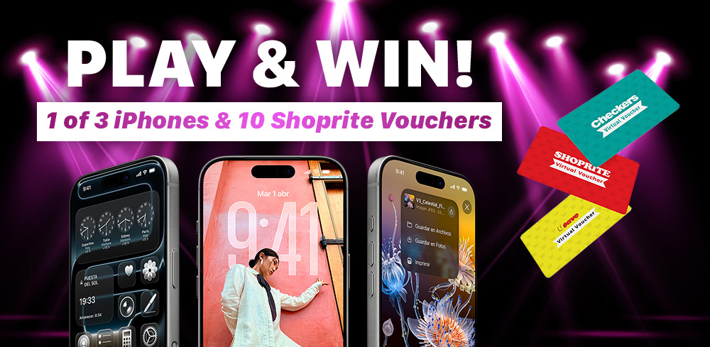 Play and WIN 1 of 3 iPhones and 10 Shoprite vouchers! R5/day subscription service.
