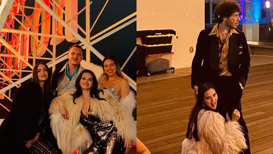 Gomez wore a shimmering Nadine Merabi jumpsuit paired with a white fur coat and her Brilliant Earth x Jane Goodall diamond necklace. Blanco, who proposed to her in December 2024, sported a leopard print shirt and velvet blazer as the couple shared affectionate moments throughout the night.